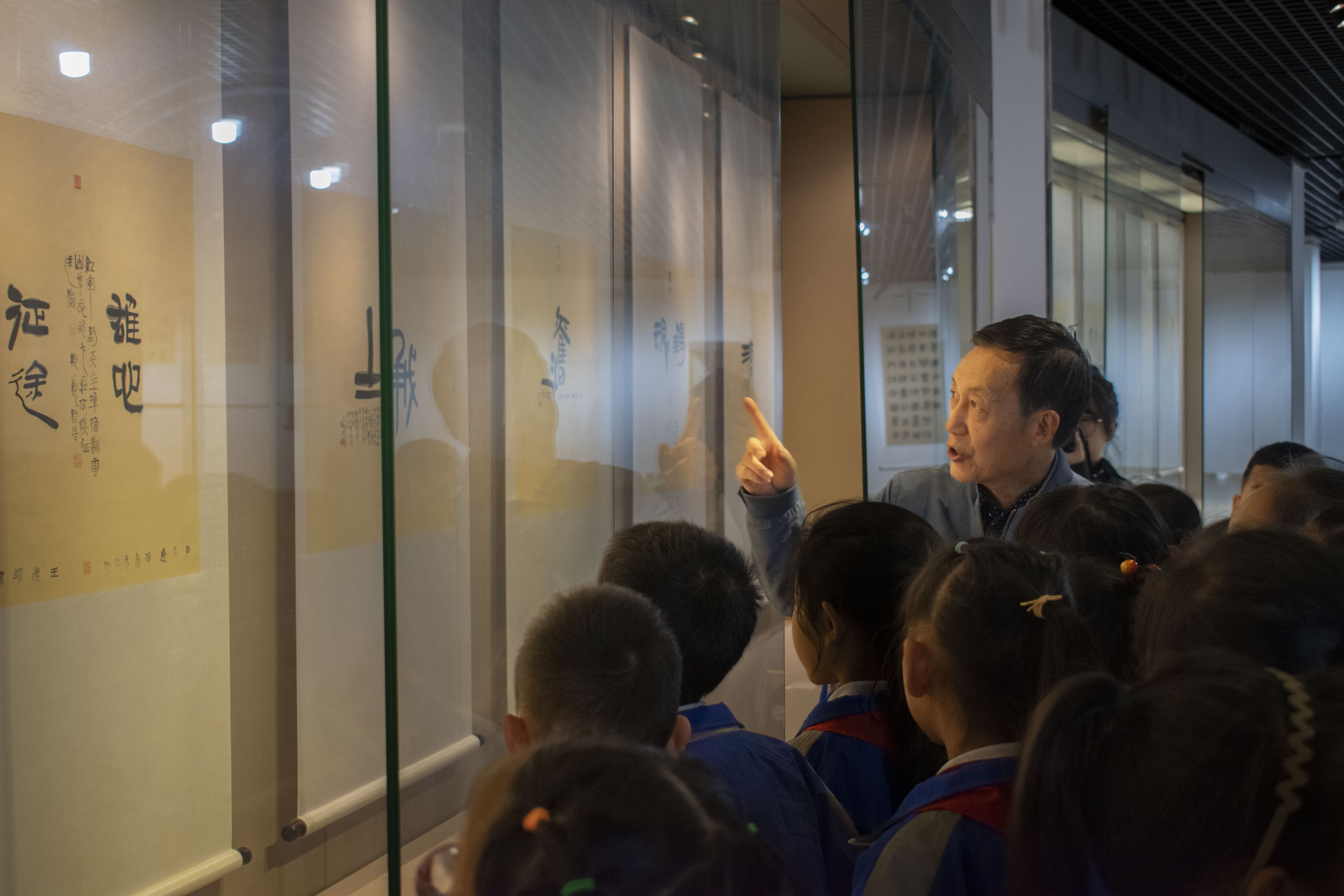 开幕式后,王德跃带领在场大中小学生进入展览馆共同驻足赏析,结合笔下书法作品讲解长征历史,让红色故事随笔墨深入人心,实现不同学段思政教育的情感联动与认知衔接,为推进大中小思政课一体化建设提供鲜活实践载体。