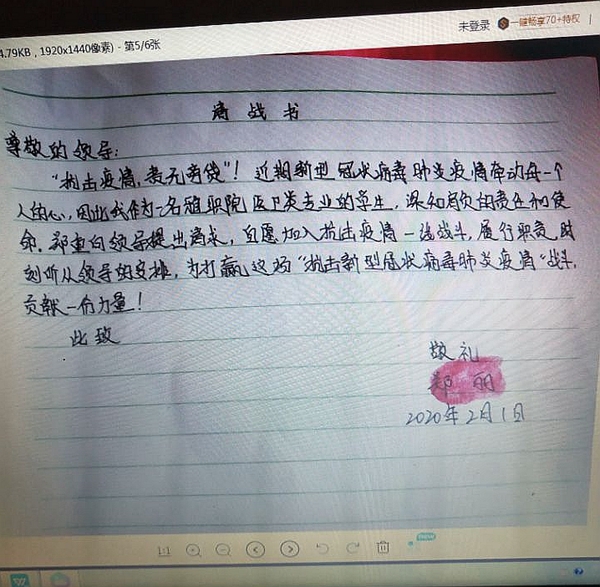 四川在线消息(雅职院 记者 王建明)“抗击疫情,责无旁贷……郑重向院领导提出请求,自愿加入抗击疫情一线,履行职责……”。