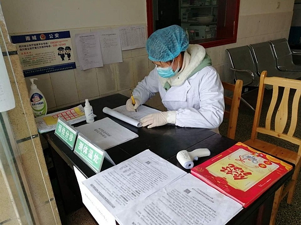 在雨城区中里中心卫生院,郑丽协助医院做宣传、测体温、一般护理和消杀等相关工作。从报到那天起,每天工作都安排得满满的,有时忙起来饭都忘了吃。