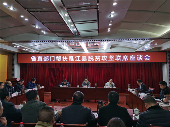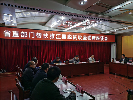 会上,雅江县委书记刘宗建同志代表雅江县委、县政府做了脱贫攻坚工作汇报,介绍了雅江县情况概述和发展状况,并从全面构建攻坚体系、立足就业产业发展、抓实基础设施建设、抓实民生内力短板、狠抓对口帮扶、抓实大排查问题整改等六个方面详细介绍了雅江县脱贫攻坚工作做法和取得的成效;省委军民融合办、雅砻江流域水电开发有限公司、雅职院、四川轻化工大学、宜宾市第二人民医院和民航西南管理局六家帮扶单位进行了交流发言,樊先茂从坚持开展村医技能轮训提升基层医疗服务能力、坚持开展巡回义诊推进医疗送健康、积极研究藏区地方性疾病治疗模式、推进教育培训与校园文化建设提升基层教育水平、持续支持村集体经济发展优化产业项目和支部共建提升精神文明建设成果六个方面介绍了学院的帮扶情况,受到了省政府领导、雅江县委政府及帮扶牵头单位省军民融合办的高度肯定。