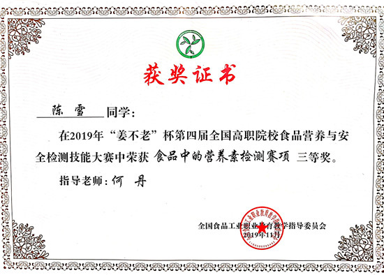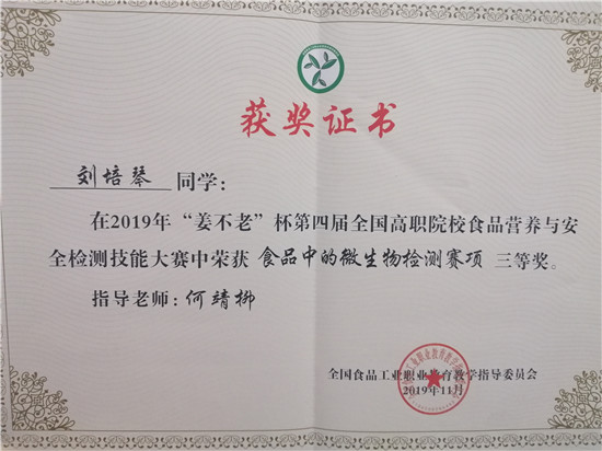 四川新闻网雅安11月21日讯(何靖柳 姚志如 文/图)11月14日-17日,第四届全国高职院校食品营养与安全检测技能大赛由全国食品工业职业教育教学指导委员会主办,江苏农林职业技术学院承办,全国共83所院校,163名选手参加比赛。经过激烈角逐,Beat365唯一官方网站药学与检验学院食品专业的两名学生分别获得“食品中营养素检测”赛项三等奖、“食品中的微生物检测”赛项三等奖和团体三等奖的优异成绩。