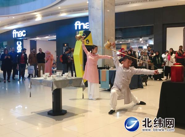 此次活动,他们先后在摩洛哥的拉巴特、卡萨布兰卡等两座城市,结合具有四川蒙顶山特色的茶文化进行了多场长嘴壶茶艺表演。精彩的表演、独具特色的茶文化展示,赢得了我国驻摩洛哥大使馆官员,以及当地人民的赞誉和良好反响。图为表演现场。