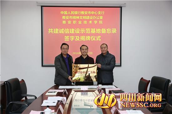 此次三方合作共建诚信建设示范基地是雅安银校合作、校地合作的新内容,必将为三方发挥各自优势深入开展广泛合作,共同推进青年学生社会主义核心价值观教育、个人诚信教育、征信文化校园建设及雅安社会信用体系建设产生积极影响。