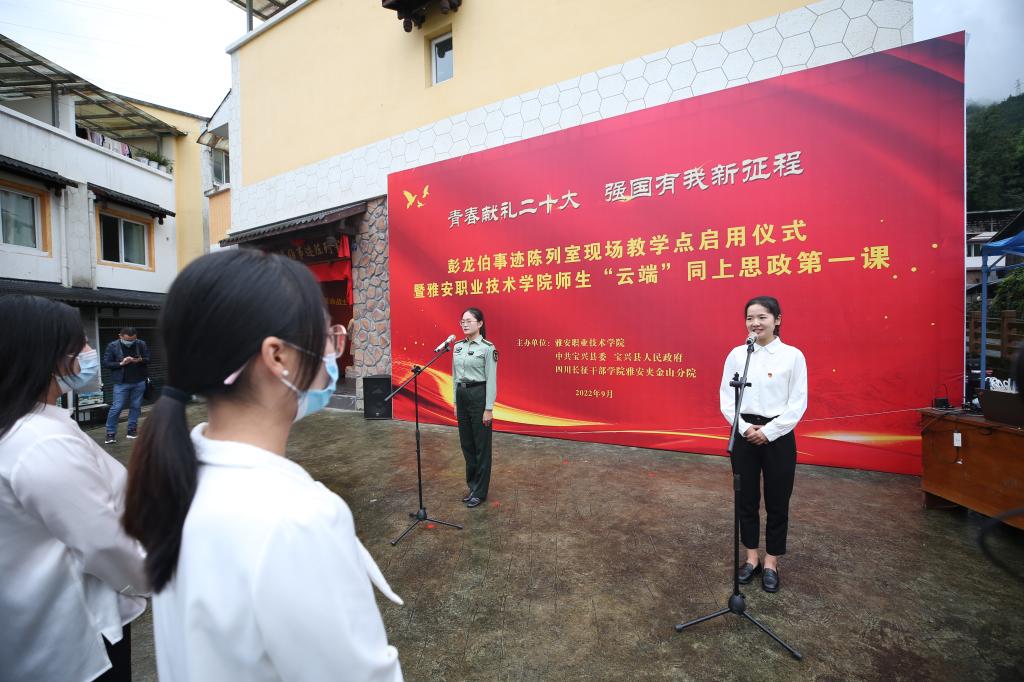 课程以“双师双线”(校内思政教师、校外红色实践基地教师线上线下同上思政课)的教学形式,由马克思主义学院联合四川长征干部学院雅安夹金山分院在宝兴彭龙伯事迹陈列室为雅职院师生进行现场直播授课。