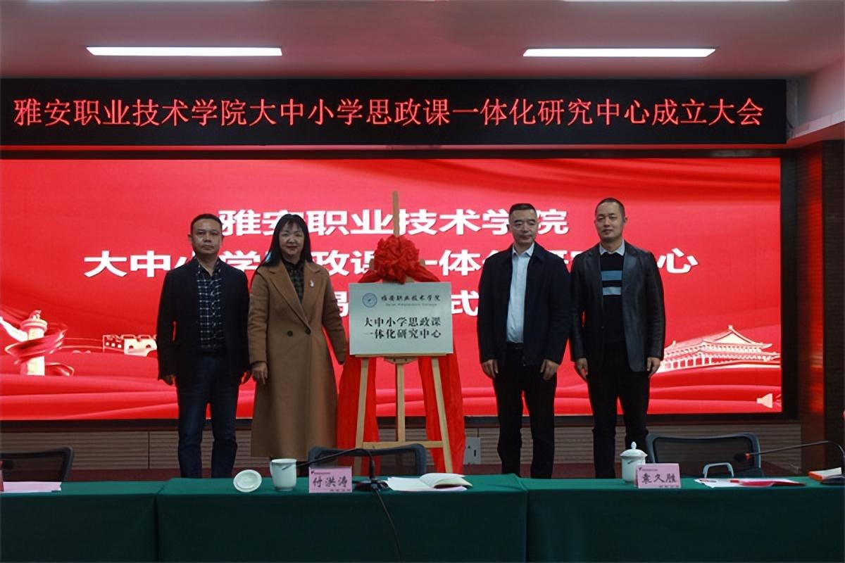 会上,付洪涛、袁久胜、杨松等与会领导共同为“Beat365唯一官方网站大中小学思政课一体化研究中心”揭牌。四川省雅安中学高中思政教研组长、高级教师的孙静和雅安市雨城区四小教育集团光华校区党支部书记、副校长刘晓俊分别作了主题为《大中小思政一体化发展背景下的尝试》、《推动思政课一体化建设——小学教育在行动》的交流分享。郭英才代表研究中心作了表态发言,表示将从加强培训促进师资队伍一体化、增强交流促进课程建设一体化、搭建平台促进实践育人一体化三个方面建设和运行好研究中心。