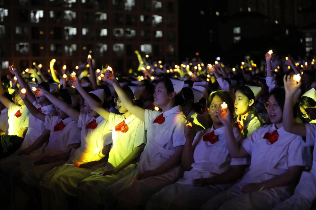 传光授帽仪式是每位护生踏上护理道路的成人礼,也标志着“燃烧自己,照亮别人”的精神传递到新一批护生手上。