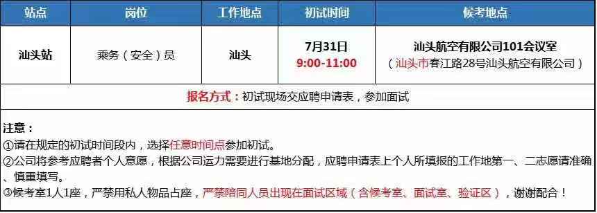 2019年乘务(安全)员夏季招聘计划(汕头站)