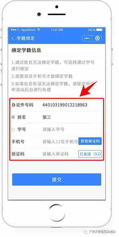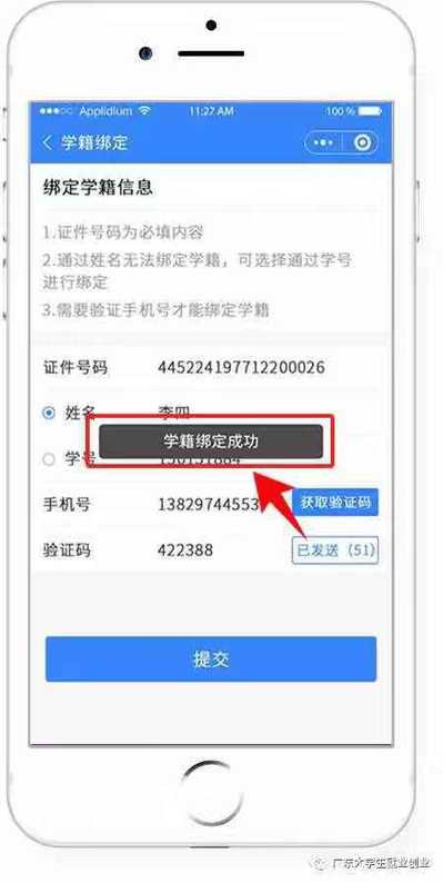 3、若绑定学籍失败,请按提示重新绑定,成功后提交。