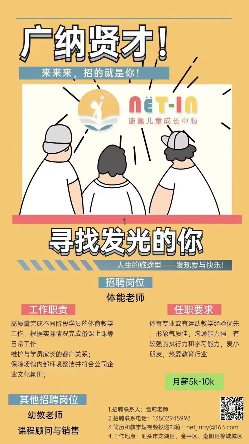 能赢体适能隶属于汕头市能赢体育文化传播有限公司于2018年成立。能赢致力于探索儿童、青少年成长之路,怀抱博爱之心,以犹太式教育为纲领,深入研究幼儿教育与家庭教育之间的联系。能赢力争成为中国青少年儿童教育行业的佼佼者。目前在汕头拥有6个教学点,一群有专业体育知识的教练,以传播科学运动理念为使命,为提升千万孩子的身体健康水平全力以赴!