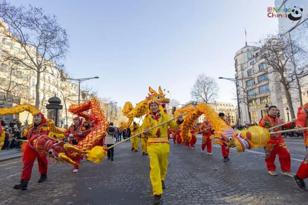 为庆祝被列入联合国非物质文化遗产名录后的首个春节,持续促进中法文化与旅游交流,深化中法人民友谊,2月2日,在巴黎8区政府和巴黎警察局支持下,由法国巴赫瑞酒店集团、香榭丽舍大街商业委员会、中国驻巴黎旅游办事处、中国银行、广东省文化和旅游厅、法国华人贸易促进会等华人华侨社团,以及泊睿BORUI、Altervip唯璞集团和Paris Fantastic!等单位共同主办的第三届“欢乐春节满巴黎,龙狮贺岁舞香街”春节巡游活动在被誉为“世界最美大道”的香榭丽舍大街隆重举行。据统计,当天吸引超过20万人齐聚香街,共同感受这一热烈喜庆的春节文化盛宴。