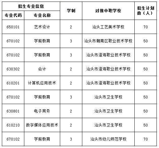 根据《国务院关于印发国家职业教育改革实施方案的通知》(国发【2019】4号)、《国务院关于深化考试招生制度改革的实施意见》(国发【2014】35号)和《广东省人民政府办公厅关于印发广东省职业教育“扩容、提质、强服务”三年行动计划(2019-2020年)的通知》(粤府办【2019】4号)等文件精神,我院与汕头市工艺美术学校等5所中职学校联合举办“高职专业学院试点班”,合格毕业生颁发全日制专科毕业证书。