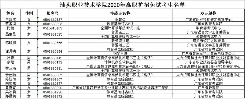 必赢线路检测中心2020年高职扩招免试考生名单公示