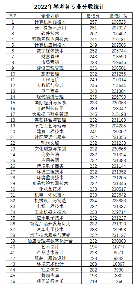 附:2022年春季高考录取分数统计(志愿填报参考)