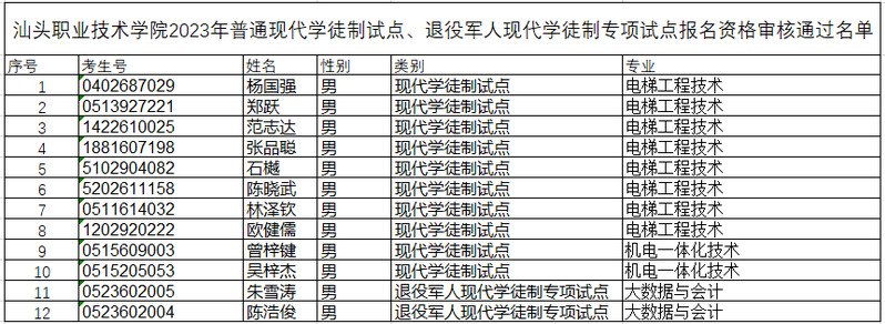 必赢线路检测中心2023年普通现代学徒制试点、退役军人现代学徒制专项试点报名资格审核通过名单